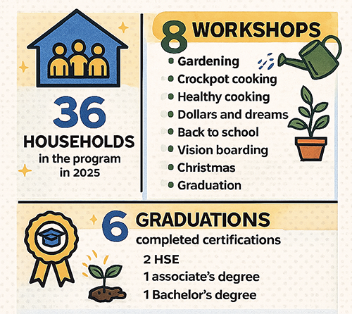 Our programs help low-income families achieve economic independence with the goal to help bring individuals experiencing a crisis to stability.